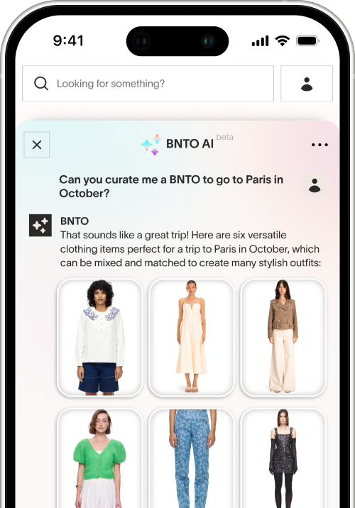 Meet BNTO. Choose your favorite six styles and curate your own BNTO box each month — without worrying about fast fashion waste, closet space, or laundry. One monthly subscription, limitless outfit possibilities. And the best part? You can purchase your favorite pieces at up to 75% off to keep them forever.